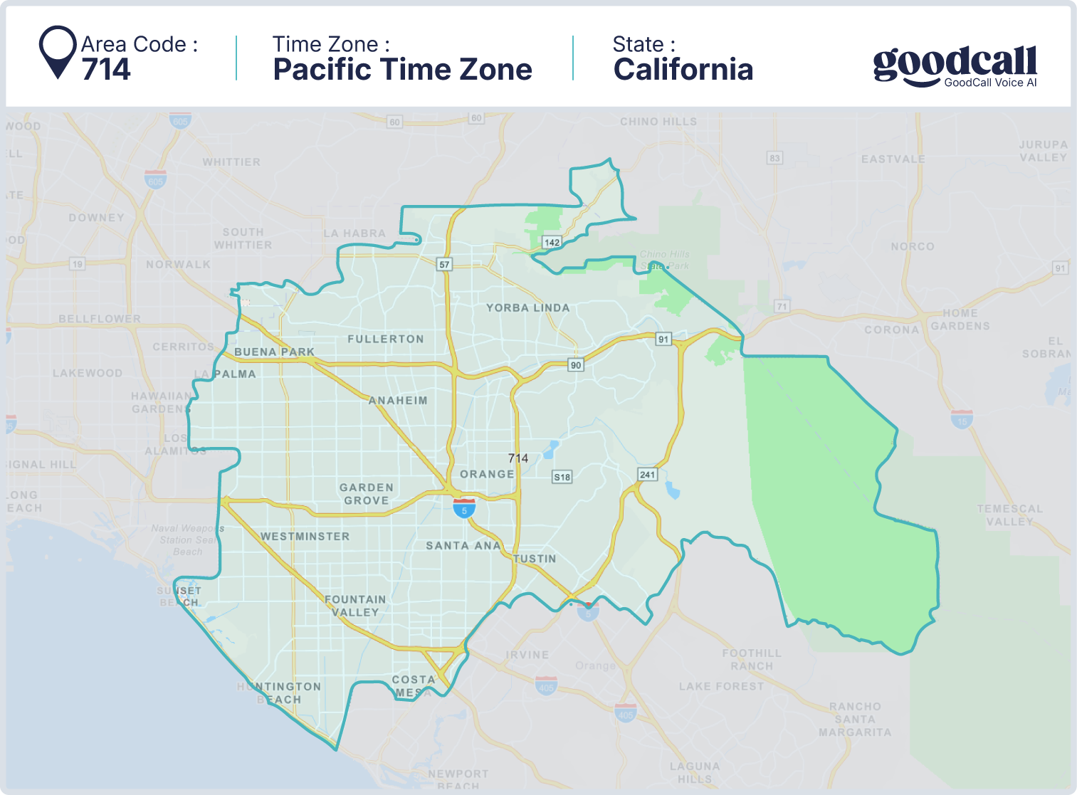A 714 area code number with Goodcall gives an edge by showing customers you're part of their community. In a county where local relationships matter, it demonstrates that your business understands and values the people it serves, while keeping you responsive around the clock without adding to your workload.