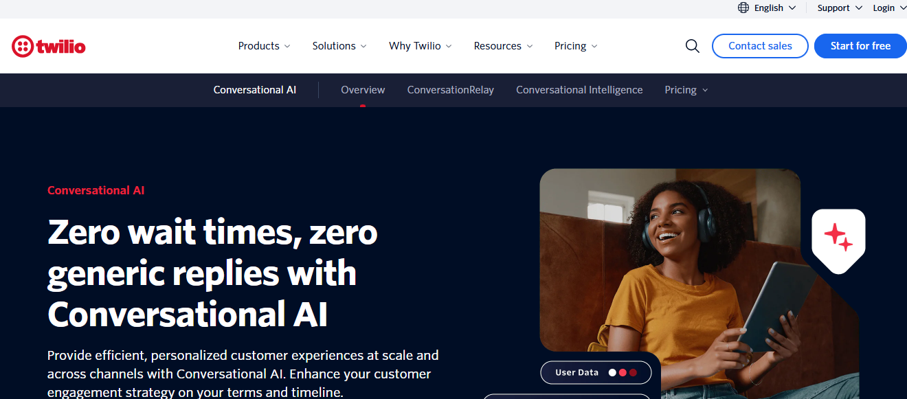 Pricing: Twilio’s programmable voice is pay-as-you-go, with outbound voice call costs varying by region (typically $0.01+ per minute for call origination, plus additional AI service costs depending on the voice engine).
