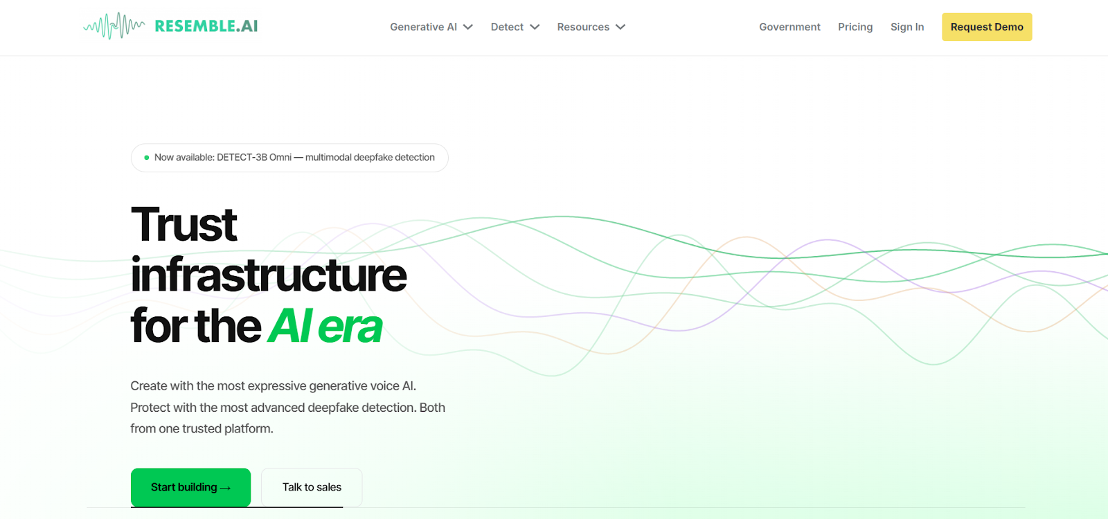 Resemble AI provides generative voice technology combined with advanced deepfake detection. Its detection models analyze audio signals in real time to identify manipulated or synthetic speech used in fraud, impersonation, or misinformation attacks.