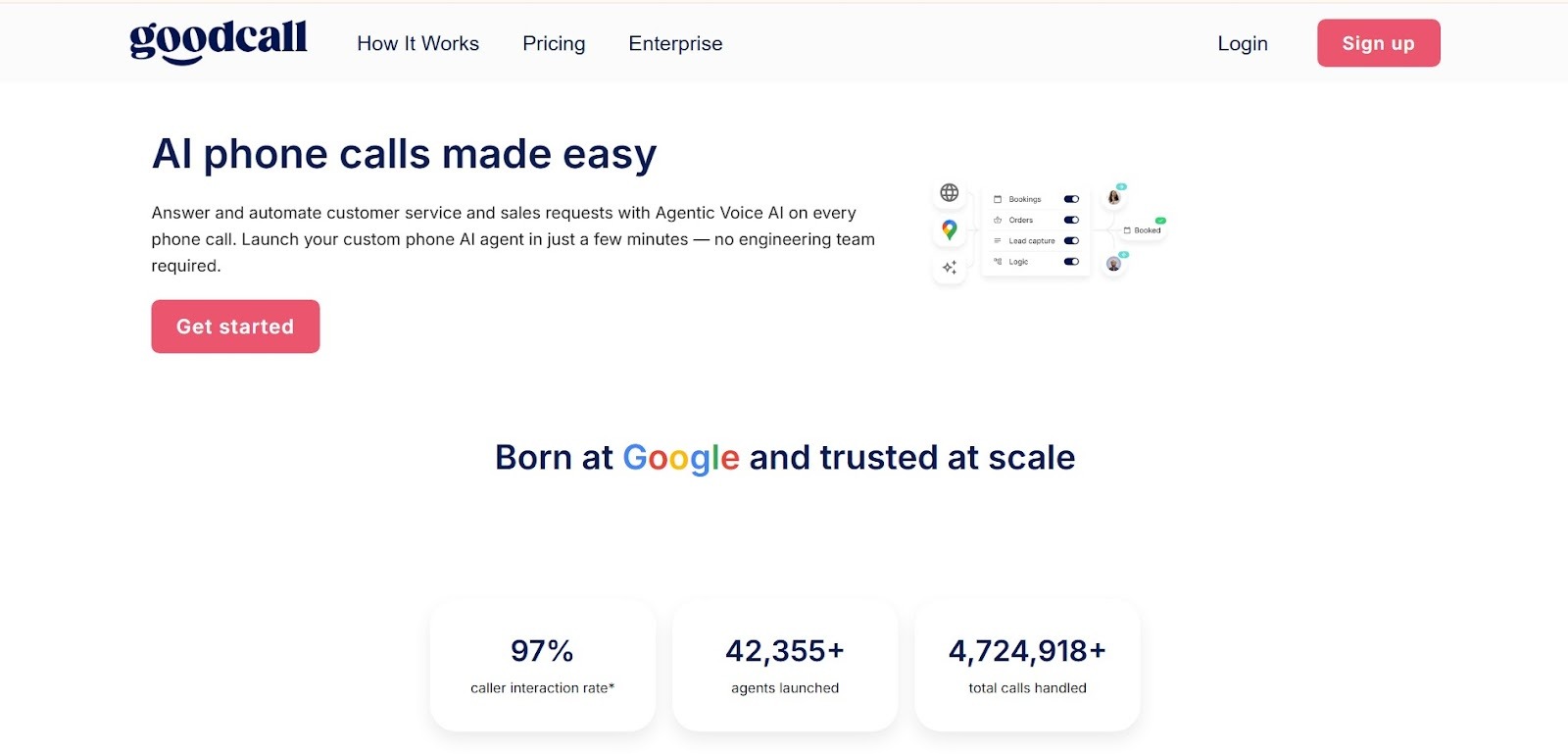 Goodcall is a comprehensive voice AI platform that combines speech recognition, automation, and business workflows for enterprise call handling.