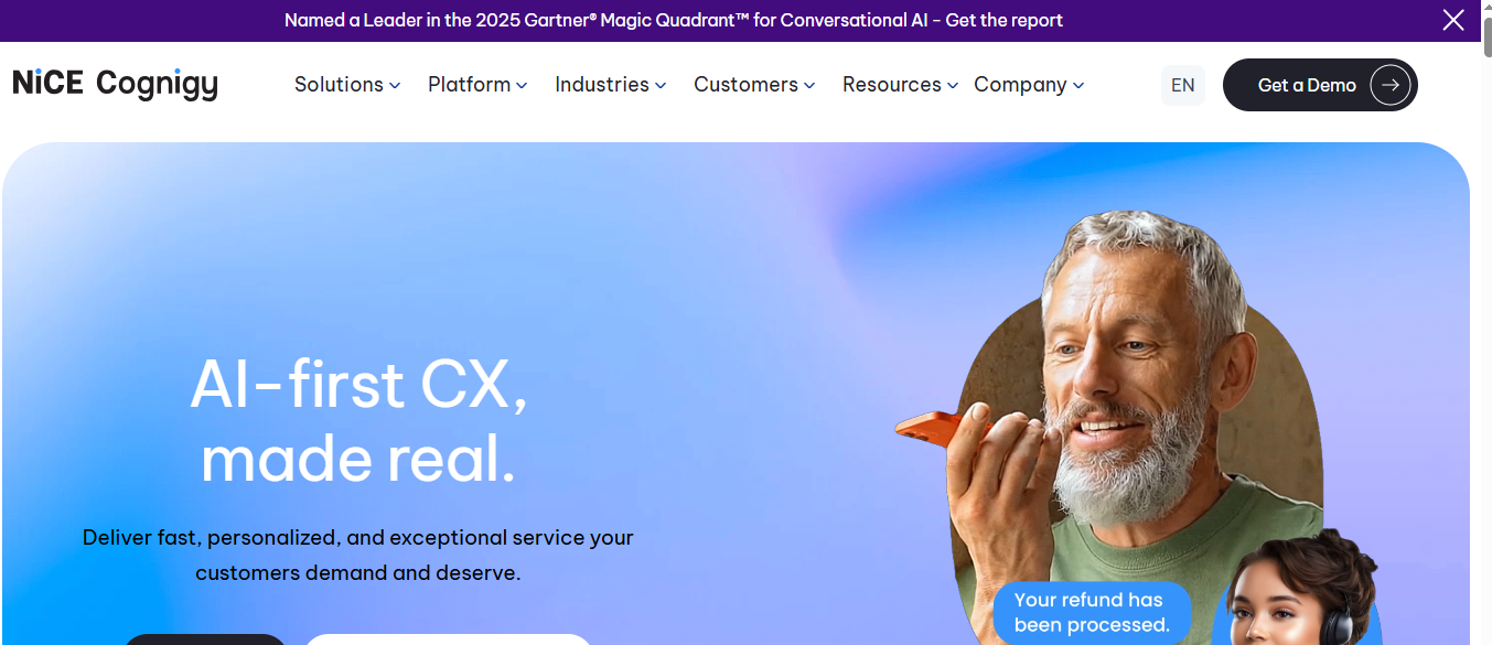 Cognigy is an enterprise conversational AI platform designed for unified automation across voice and digital communication channels. It enables organizations to manage large-scale customer engagement through a single AI framework.