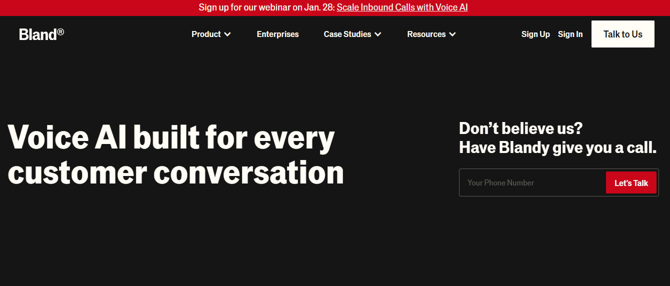 Ideal Use Case: Bland AI works best for startups and small businesses that need fast deployment of voice AI alternatives for basic call answering and lead capture.